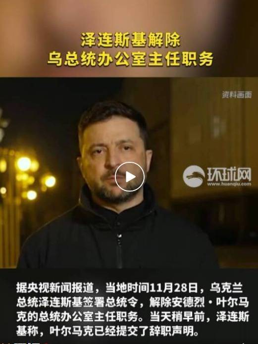 据新华国际,乌克兰总统泽连斯基11月28日说,乌谈判代表团团长、总统办公室主任叶尔马克当天递交辞呈。数小时前,乌反腐部门搜查了这名泽连斯基得力助手的住所。